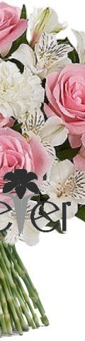 4 x Pink Roses, 2 x White Carnations, Pink & White Alstroemeria
