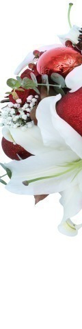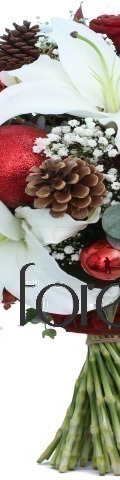 4 White Lilies, 5 Red Roses, Gypsophilia, 4 Pine Cones, 4 Red Baubles
